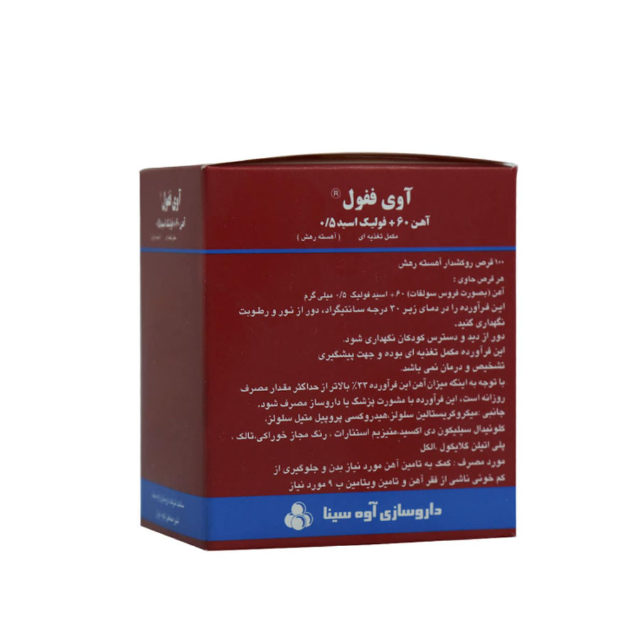 قرص آوی ففول آهن 60 و فولیک اسید 0.5 آوه سینا 100 عدد
