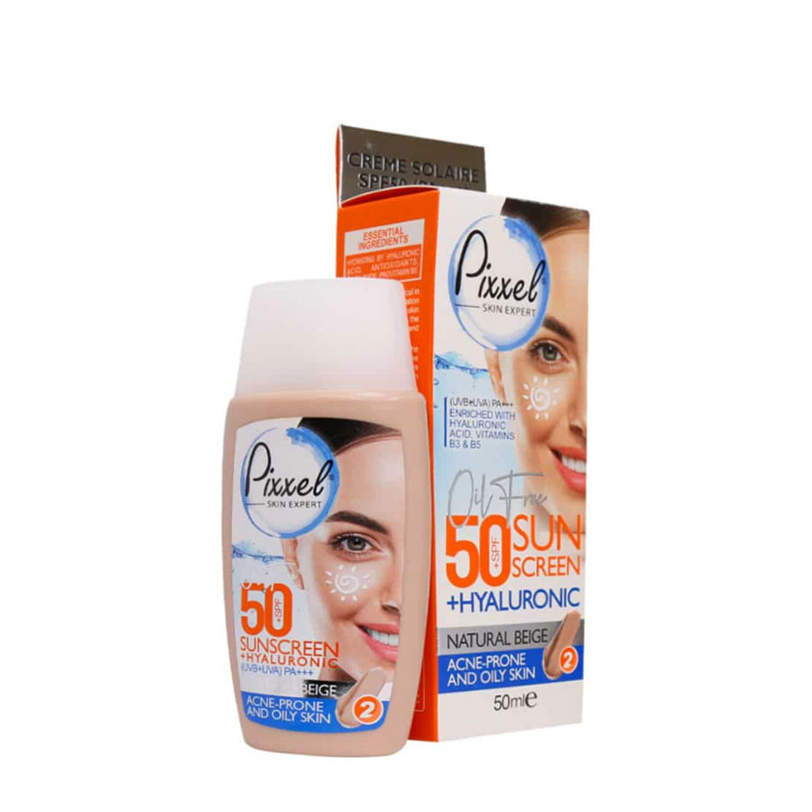 کرم ضد آفتاب SPF50 پیکسل مناسب پوست چرب و جوش دار 50 میلی لیتر | بژ طبیعی
