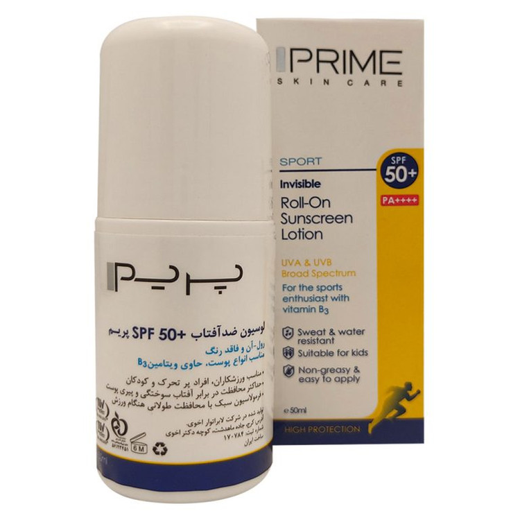 پریم لوسیون ضدآفتاب SPF50 رول-آن و فاقدرنگ مناسب انواع پوست 50ML