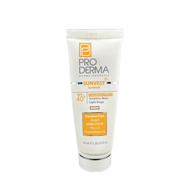 پرودرما کرم ضدآفتاب با+SPF40 فاقد جاذب های شیمیایی مناسب پوست های حساس کرم پودری بژروشن 40ML