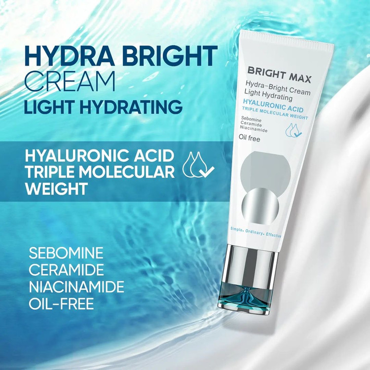 برای کمک به رطوبت رسانی موثر در کرم آبرسان لایت برایت مکس از هیالورونیک اسید با سه وزن مولکولی متفاوت استفاده شده است که به آبرسانی عمقی پوست کمک میکند.