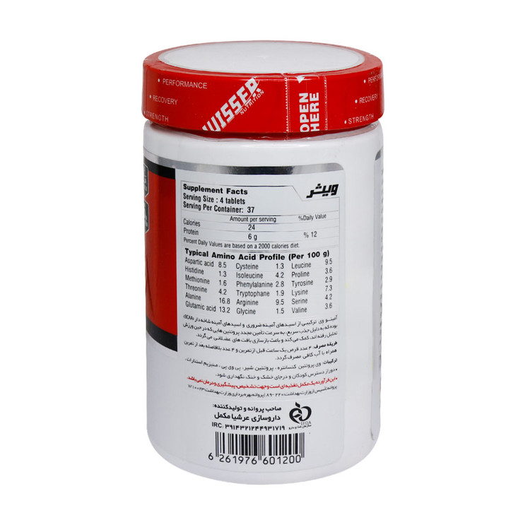 مکمل آمینو وی ویثر یک مکمل آمینو اسیدی است. در هر 4 قرص این مکمل حاوی 6 گرم اسید آمینه با منبع پروتئین وی کنسانتره و پروتئین شیر است.