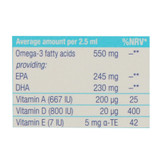 ترکیبات : روغن کبد ماهی و روغن ماهی حاوی اسیدهای چرب امگا 3، DHA (دوکوزا هگزانوئیک اسید) و EPA (ایکوزا پانتونئیک اسید)