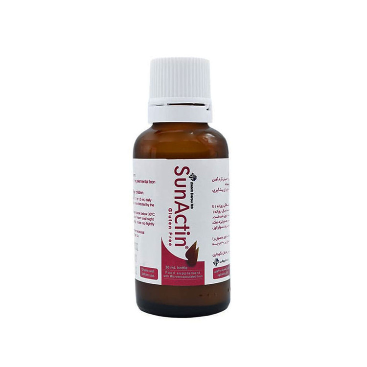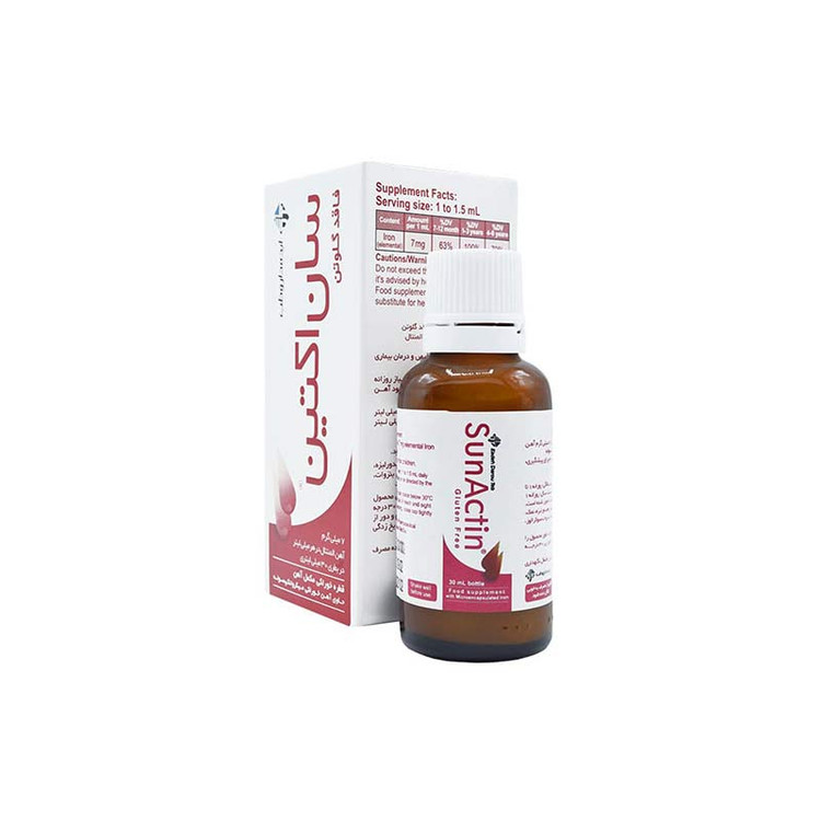 قطره آهن 30 میلی لیتری سان اکتین فاقد گلوتن بوده و حاوی آهن بوده و دارای فرم لیپوزومال آهن می باشد که جذب بیشتری داشته و همچنین عوارض سایر فرم های آهن مثل سیاه شدن دندان و ناراحتی های گوارشی ندارد. این مکمل آهن، نقش موثری در تامین آهن، پیشگیری از کم خونی و رفع کمبود آهن کودکان و نوزادان دارد. مصرف مکمل های آهن در کودکان بعد از سنین 6 ماهگی تا 2 سالگی ضروری است. همچنین آهن بکار رفته در این قطره، طعم فلزی در دهان ایجاد نمی کند و قابلیت پذیرش بالایی توسط نوزادان دارد.