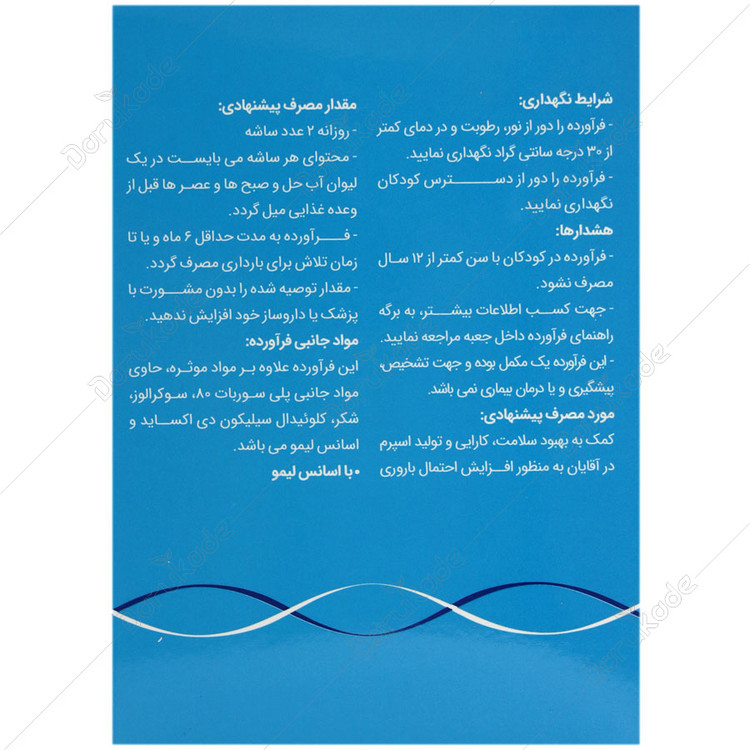 حاوی فولیک اسید | حاوی زینک | حاوی کو آنزیم Q10 | حاوی سلنیوم | حاوی ال کارنیتین | حاوی فروکتوز | B12 | C | فولیک اسید (B9)