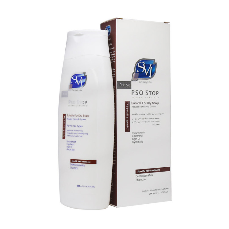 شامپو پسو استاپ اس وی آی یک شامپوی شوینده موی سر است که به خوبی کف سر را تمیز نموده و با بهره گیری از فرمولاسیونی ملایم به نحو موثری پوسته ریزی را کاهش می دهد و موها را با طراوت و دلپذیر می کند.