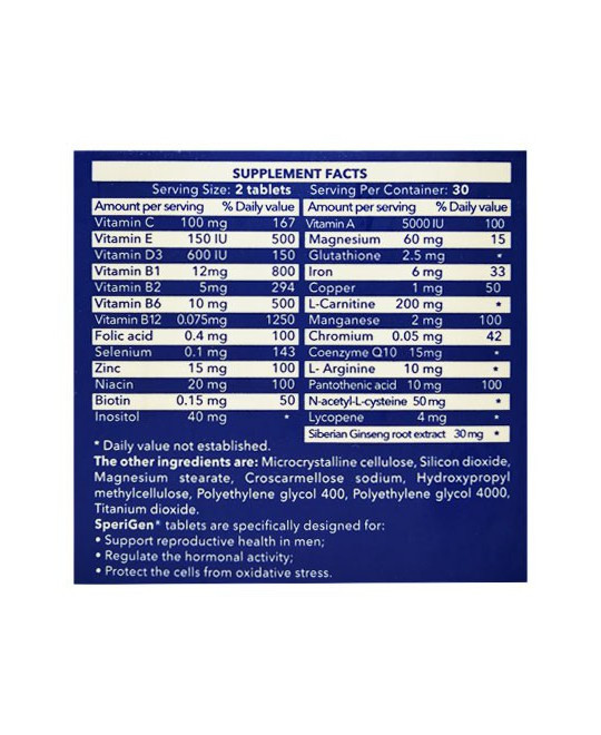روزانه 2 عدد قرص sperigen ترجیحا صبح و عصر مصرف کنید.