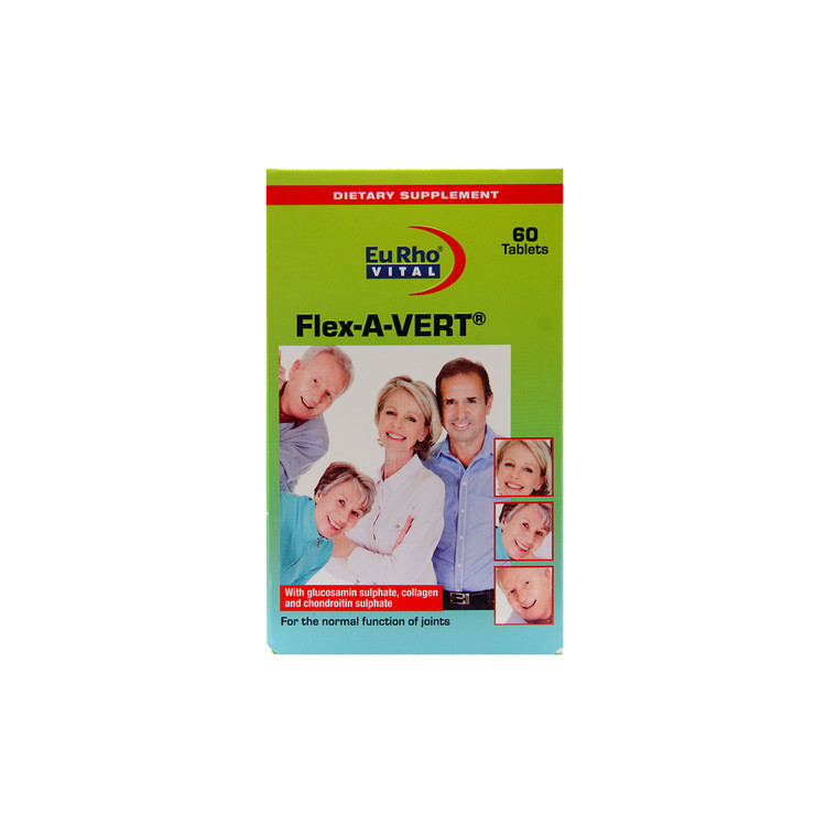 فلکس اورت یوروویتال یک مکمل غضروف ساز با فرمولاسیونی متعادل از ویتامینها، املاح معدنی و عناصر کمیاب به علاوه گلوکوزامین و کندروئیتین سولفات، عصاره زنجبیل و کلاژن هیدرولیز شده میباشد. قرص flex a vert با تحریک ساخت کلاژن و تقویت بافت غضروفها باعث بهبوددامنه حرکتی مفاصل شده و از طریق کاهش التهاب، درد مفاصل را تسکین میبخشد. flex-a-vertسبب حفظ سلامت استخوان بهبود عملکرد عضلات نیز میگردد.