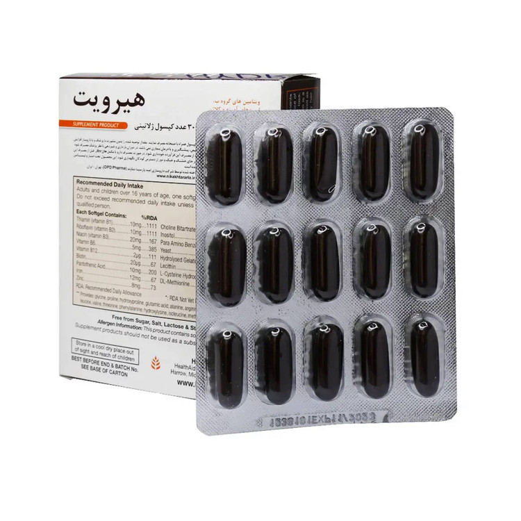 کپسول هیرویت همچنین حاوی ویتامین های B1، B2، B3 و B12 نیز می باشد که اثر بخشی ترکیبات قرص ریزش مو هیرویت را تقویت می کنند.
