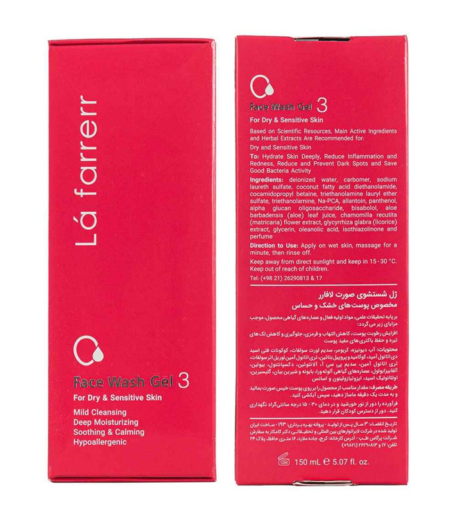 لافارر ژل شستشوی صورت 3 مخصوص پوست خشک وحساس 150ml