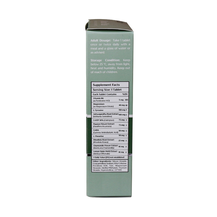 حاوی 5HTP، ال تیروزین، GABA، ال تئانین، بابونه، رودیولا، بادرنجبویه، آشواگاندا و پسیفلورا حاوی دوپامین و سروتونین