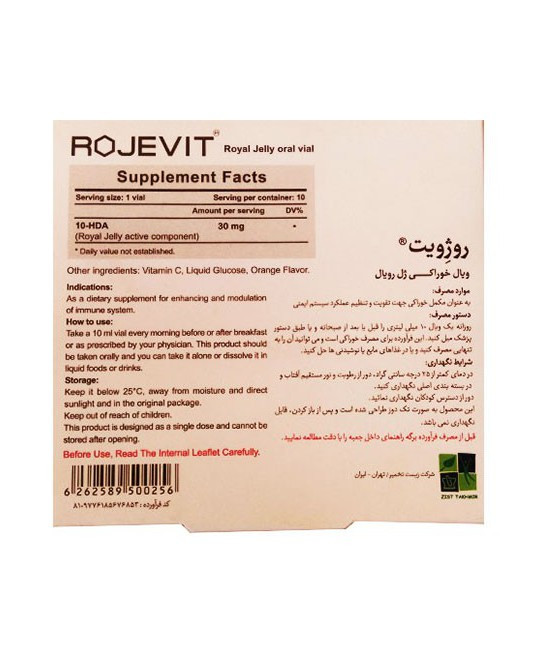 روژویت فرآوردهای حاوی رویال ژلی است که به عنوان یک تونیک مغذی، دارای اثرات سودمندی بر تقویت و تنظیم عملکرد سیستم ایمنی میباشد.