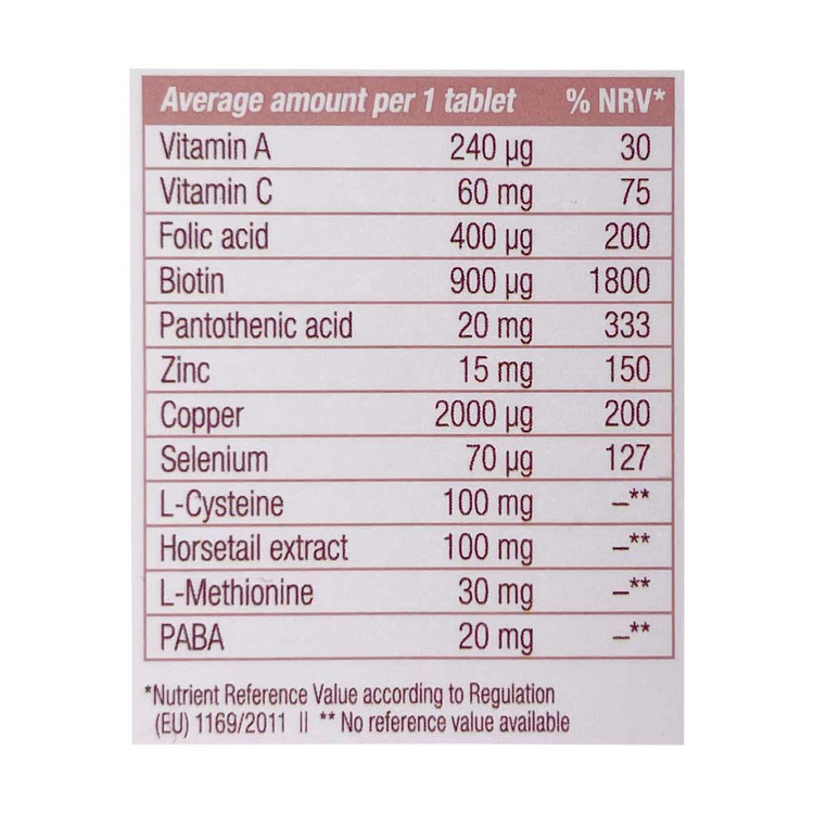 حاوی ویتامین ها، مینرال ها، عصاره دم اسب، متیونین و پارا آمینوبنزوئیک اسب (PABA)