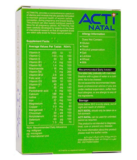 ابیان دارو اکتی ناتال قرص مولتی ویتامین مینرال 30 عددی