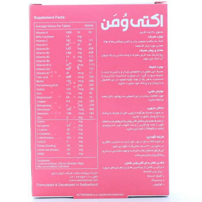 روزانه 1 عدد قرص acti woman همراه با غذا میل شود.
