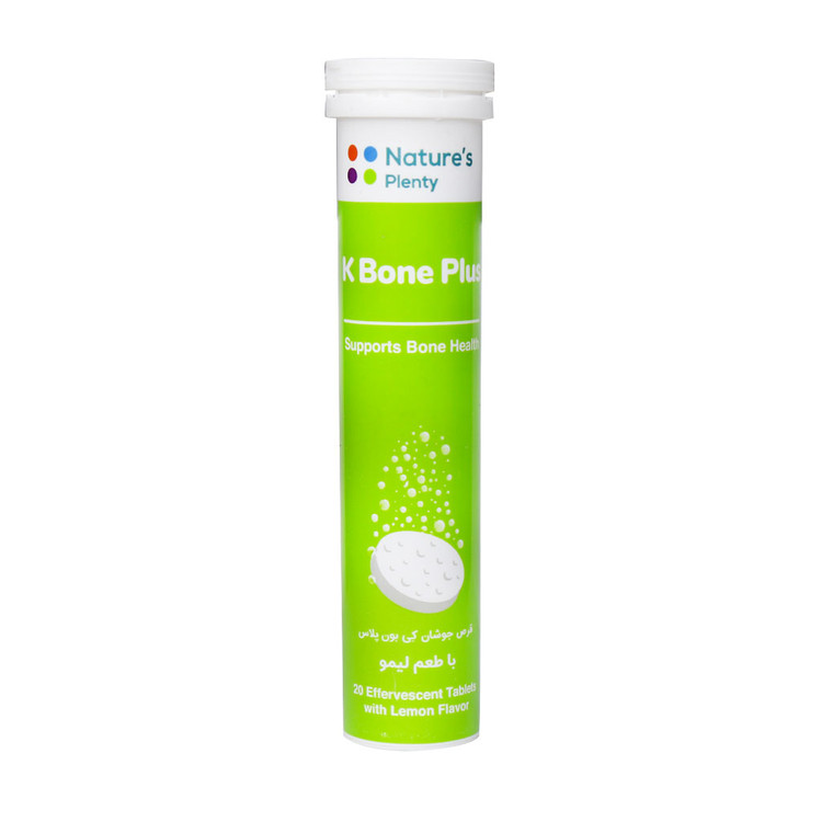 کمک به حفظ سلامت استخوان ها k bone plus حاوی 500 میلی گرم کلسیم در هر قرص جوشان کمک به تامین کلسیم مورد نیاز بدن کی بن پلاس حاوی ویتامین D و ویتامین K2 برای کمک به حفظ استحکام استخوانها کمک به بهبود تراکم استخوان به دلیل دارا بودن منیزیم
