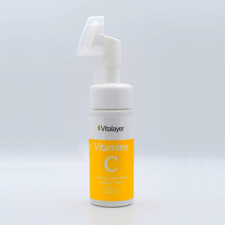 فوم ویتامین سی ویتالیر یک شوینده ملایم روزانه جهت پاکسازی پوست از آلودگی، چربی و مواد آرایشی است. این فوم علاوه بر پاکسازی پوست به حفظ شادابی، درخشندگی و جوانسازی پوست کمک می کند. این محصول حاوی ویتامین سی جهت افزایش شفافیت و درخشندگی پوست، و همراه با یک برس شوینده با جنس سیلیکونی جهت ماساژ صورت هنگام شست و شو و جذب بهتر مواد موثره از طریق پوست است. برس سیلیکونی فوم ویتامین سی ویتالیر همچنین باعث افزایش گردش خون و محرک ساخت کلاژن به واسطه جذب بهتر ویتامین سی شده و به پاکسازی عمقی منافذ و رفع انسداد آن ها کمک می کند. افزایش سنتز کلاژن هم چنین خاصیت ارتجاعی و استحکام پوست را افزایش می دهد. فوم شستشوی صورت ویتامین سی دارای PH سازگار با پوست صورت بوده و از ایجاد جوش های سرسیاه و سرسفید پیشگیری و در روشن شدن لکه و تیرگی های پوست موثر است.