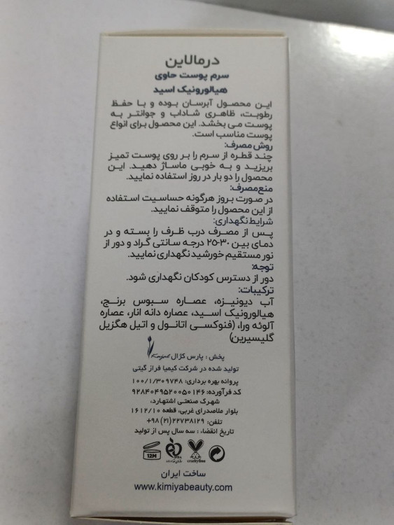 درمالاین سرم پوست حاوی هیالورونیک اسید 30ml