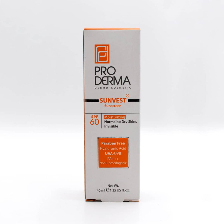 پرودرما کرم ضدآفتاب و مرطوب کننده با اس پی اف 60 مناسب برای پوست های معمولی و خشک فاقد رنگ