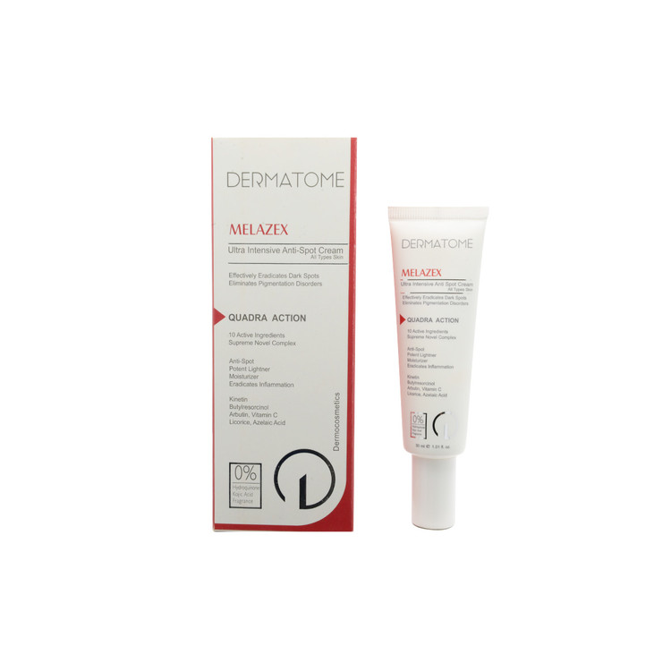 کرم ضد لک قوی درماتوم، موجب رفع موثر لکها و تیرگیهای پوست و جلوگیری از بروز مجدد آنها میشود. این کرم، اختلالات رنگدانهای ناشی از افزایش سن، تغییرات هورمونی، عوارض داروها و اشعه مضر نور خورشید را برطرف کرده و پوستی صاف و عاری از هر گونه لکه برای شما به ارمغان میآورد. این کرم ضدلک در رفع تیرگیهای ناشی از عوارض لیزر و اپیلاسیون موثر بوده و لکههای مقاوم به درمان را از بین میبرد.