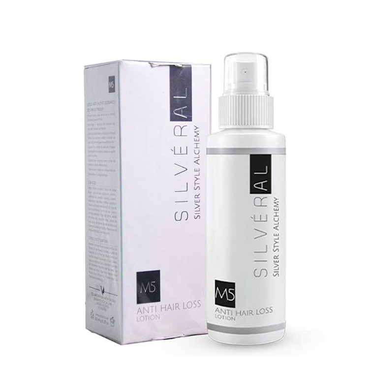 لوسیون ضد ریزش سیلورال M5 حاوی ماینوکسیدیل باعث افزایش ضخامت و استحکام مو، تغذیه فولیکول مو و بهبود گردش خون می شود. این محلول در درمان ریزش مو و کنترل ریزش مو موثر است. لوسیون ضد ریزش مو سیلورال از انتقال دهنده نانو ذرات نقره و ساپونین به عنوان یک حامل بسیار قوی استفاده کرده که می تواند مواد موثره را از پوست عبور داده و به محل مورد نظر فولیکول مو منتقل کند. همچنین در این لوسیون از گاماگلوتامیک اسید، ماینوکسیدیل و ترکیبات موثره مختلف برای درمان ریزش مو استفاده شده است که باعث تحریک رشد مو شده و مناسب موهای نازک، ضعیف و شکننده می باشد و در درمان الگوی ریزش مو مردانه و زنانه وابسته به عوامل هورمونی، موثر است. این محلول حاوی ماینوکسیدیل است. ماینوکسیدیل باز کننده کانال های غشای سلولی است و می تواند با گسترش عروق خونی، موجب افزایش خون رسانی، اکسیژنرسانی و تغذیه بهتر فولیکولهای مو و در نهایت باعث افزایش رشد مو شود. ماینوکسیدیل موجود در این محصول همچنین در طولانیکردن سیکل رشد مو نیز نقش دارد.