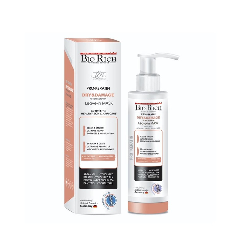 ماسک مو پروکراتین بایوریچ بدون آبکشی حاوی عصارهای روغن نارگیل، عصاره مریم گلی و عصاره دم اسبی و روغن آرگان می باشد که برای نرمی و بازسازی موهای آسیب دیده مانند موهای کراتینه، پلاتینه، ریباندینگ و دکلره شده مناسب می باشد.