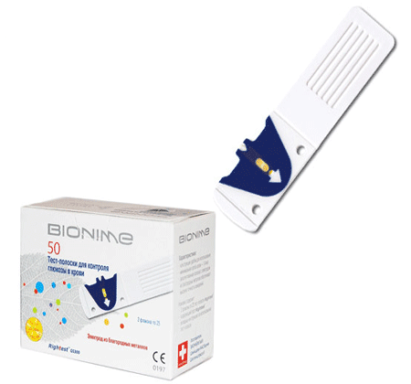 طراحی نوار تست قند خون بایونیم با سایر شرکت ها متفاوتند. همه نوارها به شکل عمودی و نوارهای بایونیم از کنار به دستگاه متصل می شوند. مزیت دیگر آن پهن بودن قالب پلاستیکی نوار تست قند خون است که براحتی میتوان آن را در دست گرفت. همچنین برخورد خون با نوار تست درحداقل زمان ممکن اتفاق میافتد، که تاثیر عوامل محیطی بر نتیجه آزمایش را میکاهد. ونیز بین قسمت قرار دادن خون روی نوار و محل قرارگیری دست فاصله زیادی است بنابراین دست شخص آلوده نمیشود.