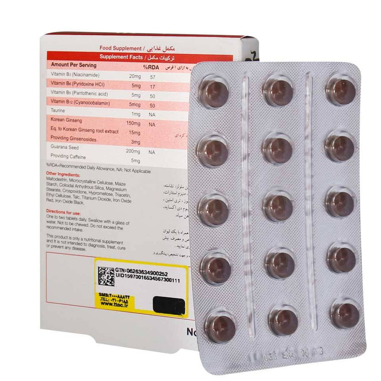 - حاوی ویتامین های گروه B تائورین، جینسینگ و گوارانا